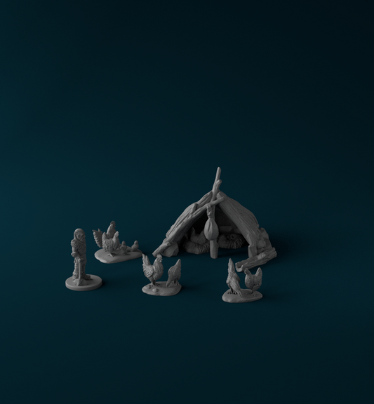 Hühner mit Stall aus The Rampart von StoneAxe Miniatures