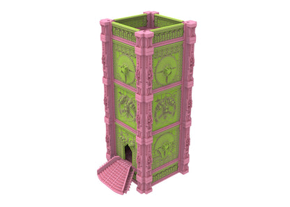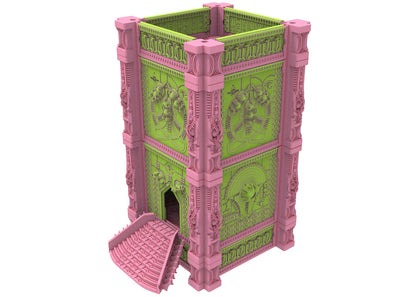 Tauche ein in eine außergewöhnliche Welt, in der Antike und Zukunft in einem atemberaubenden Schauspiel aufeinanderprallen. Diese modularen Gebäude eignen sich perfekt für den Einsatz in Tabletop-Spielen, Dioramen oder als Sammlerstücke. Die Designs sind hochdetailliert und mit ägyptischen Motiven und kybernetischen Elementen gestaltet, wodurch eine einzigartige Ästhetik geschaffen wird, die sicher beeindruckt.