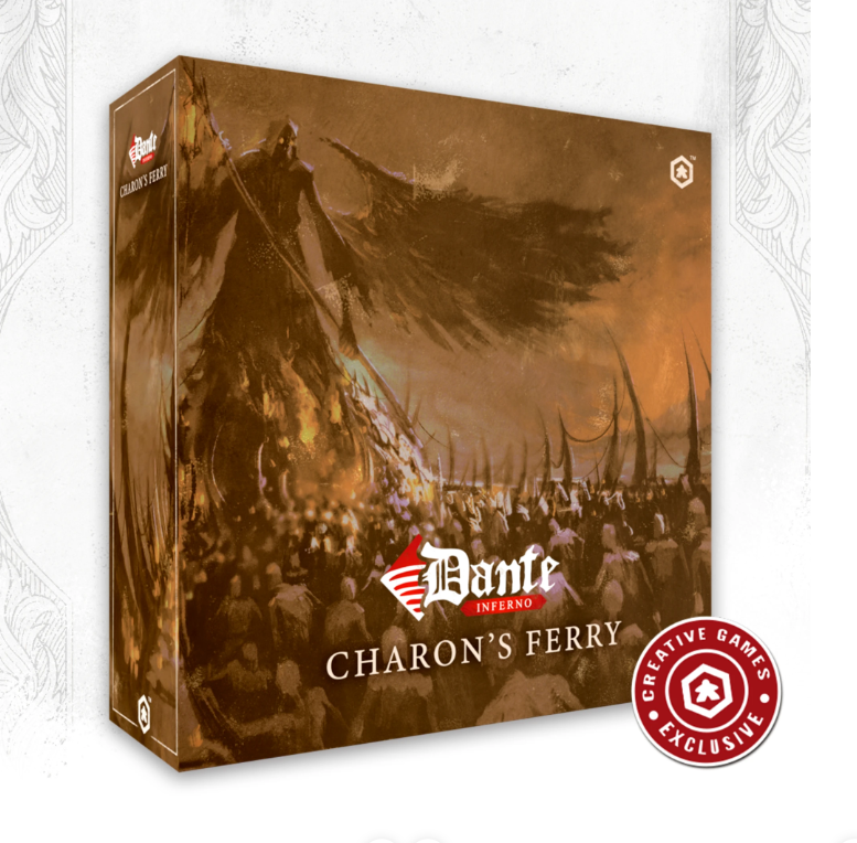 Beinhaltet DANTE: Inferno - Core Box, DANTE: Inferno - Charon's Ferry (Stretch Goals), DANTE: Inferno - Coliseum (tägliche Freischaltungen) und das Character Miniature Pack.
