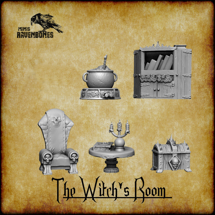 Hexenzimmer Set aus 5 verschiedenen Modellen von RavenBones Miniaturen.
