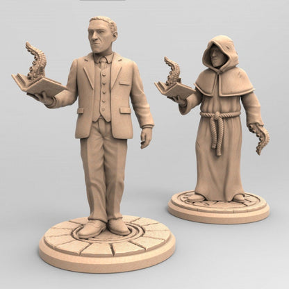 H.P. Lovecraft als Ermittler oder Kultist und 8 verschiedene weitere Kultisten (als Hybriden aus Menschen und Tiefen Monstern/Deep Ones) passend für Lovecraft Spiele - aber auch viele andere.