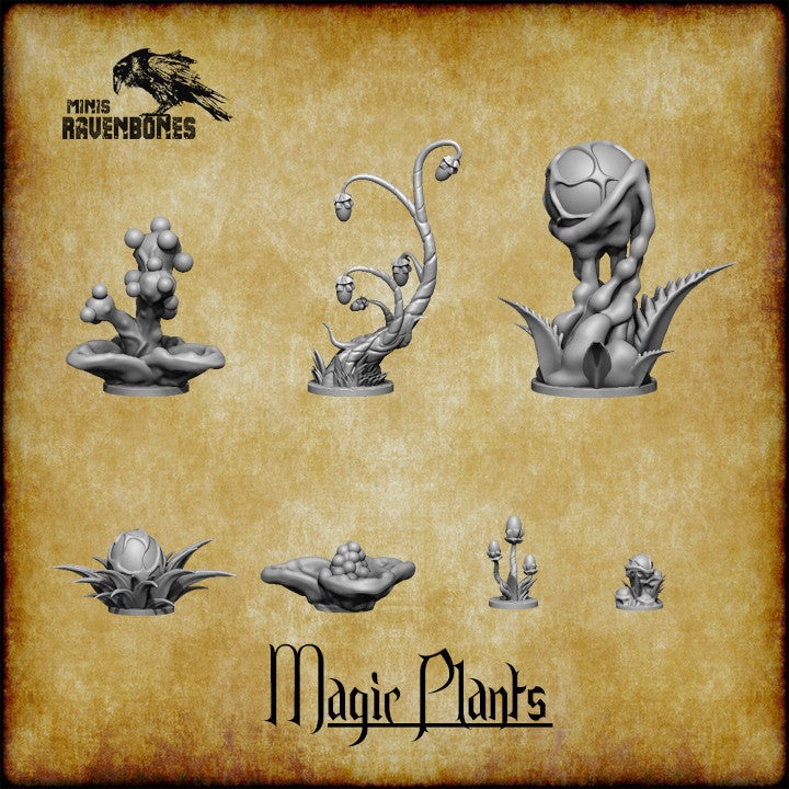 Set aus 7 verschiedenen Pflanzen für Brettspiele und RPGs von RavenBones Miniaturen.