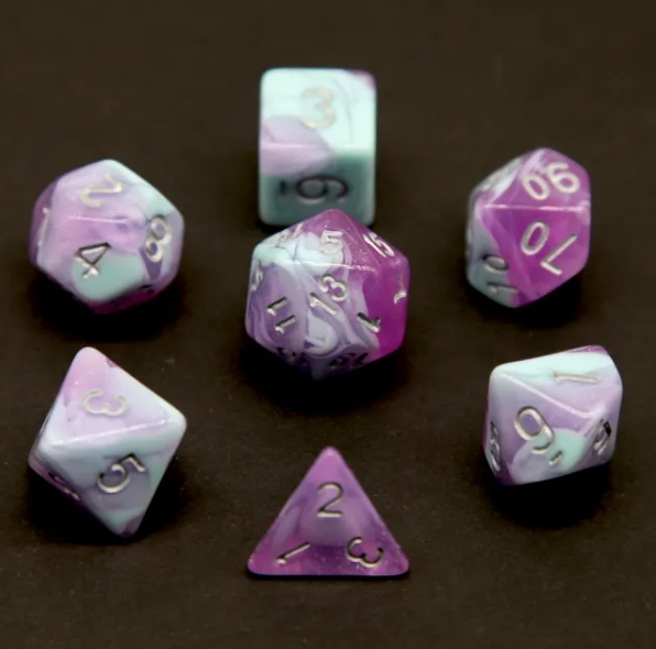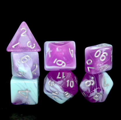 7-teiliges Set aus polyedrischen Würfeln für DnD, RPG-Spiele und andere Spiele.
