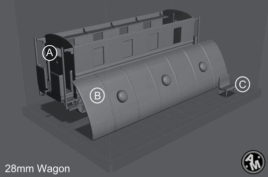 WW1 locomotive with coal tender and wagon