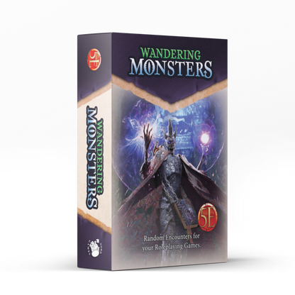 This collection of decks takes monsters from the 5th Edition Core Rulebooks and makes them available in the form of wandering monster boards that can be randomly rolled or chosen by difficulty. Decks are divided into Dungeon, Underground, City, Waterways, and Wildland environments.