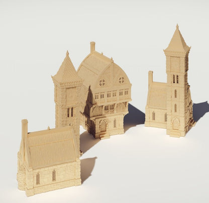 Clock tower: 70mm x 85mm diameter and 376mm tall.