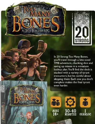 Wenn du dich voll und ganz auf das 20 Strong-Regelwerk einlassen willst, ist dieses Bundle genau das Richtige für dich! Das 20 Strong: All In Bundle enthält alles, einschließlich der Kernbox (mit dem Deck Solar Sentinels) und den Erweiterungsdecks Too Many Bones und Victorum.