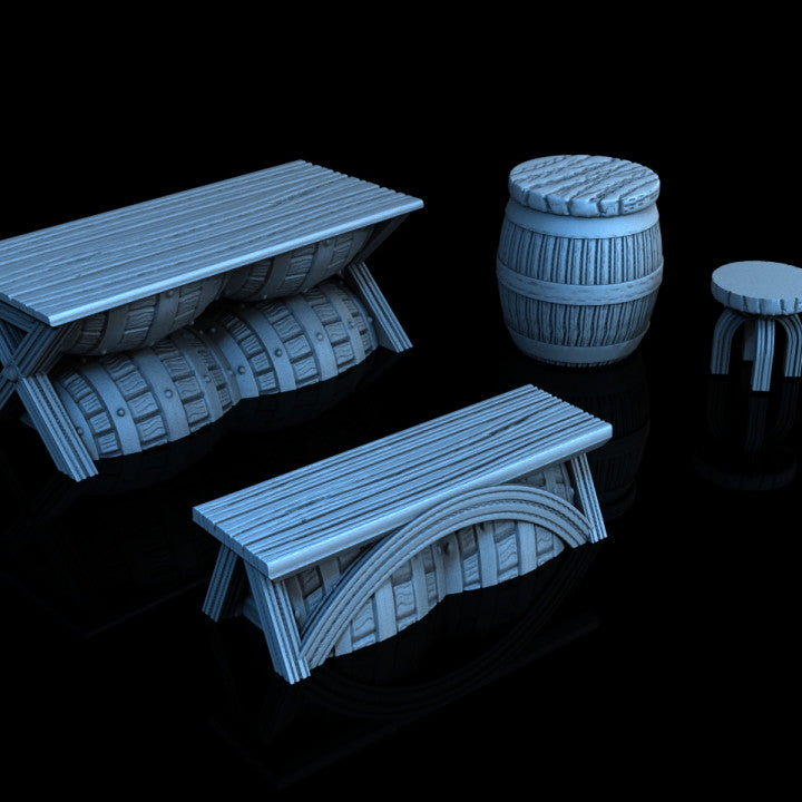 Zubehör aus dem mittelalterlichen Stadt-Set von Adrian / 3DP4U.