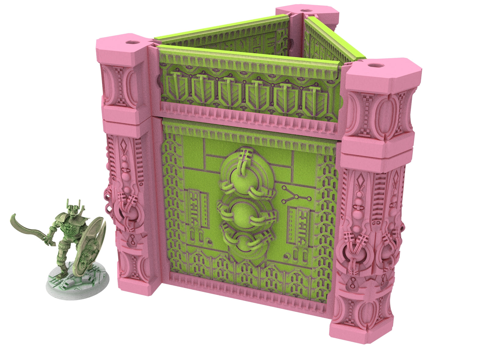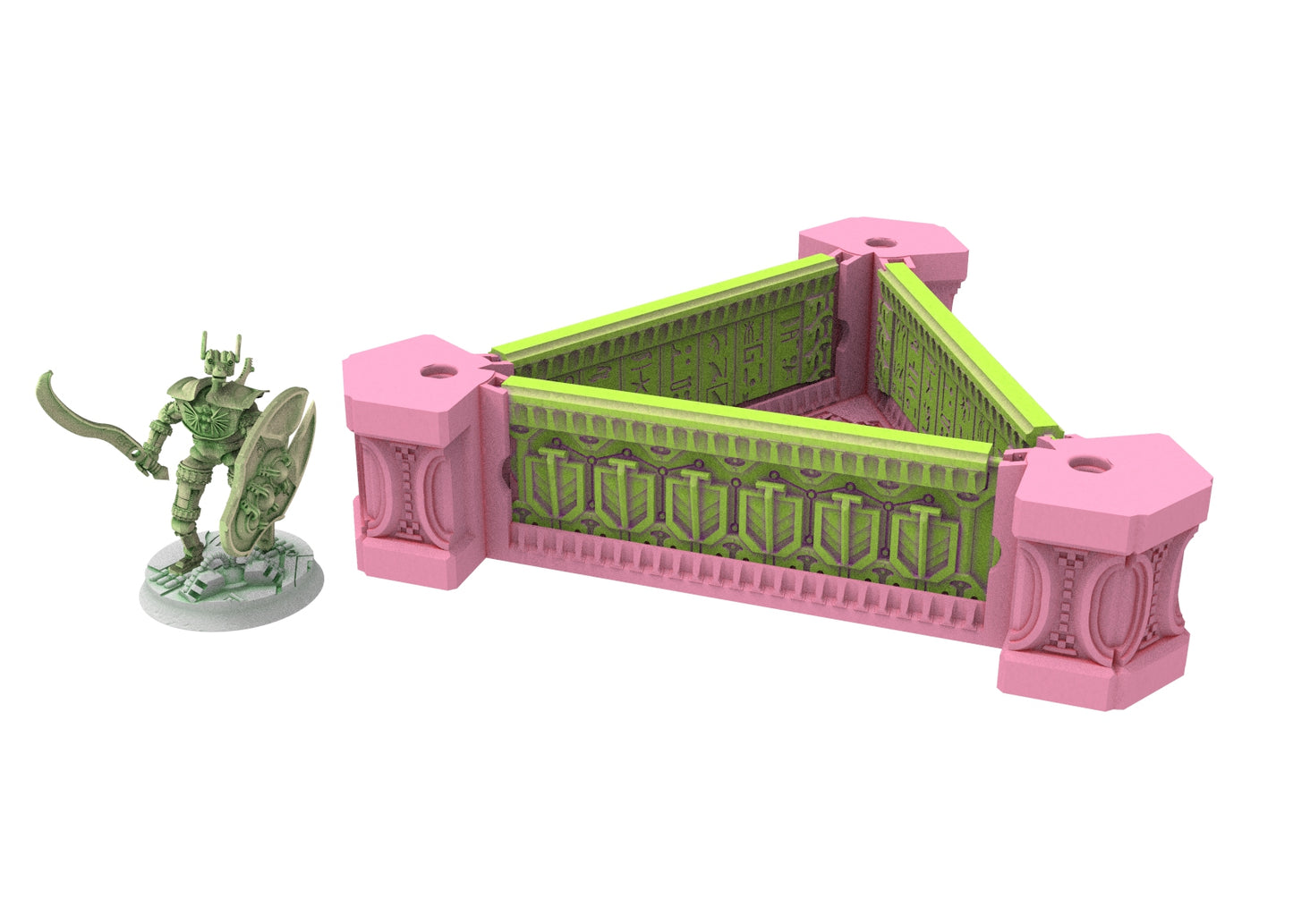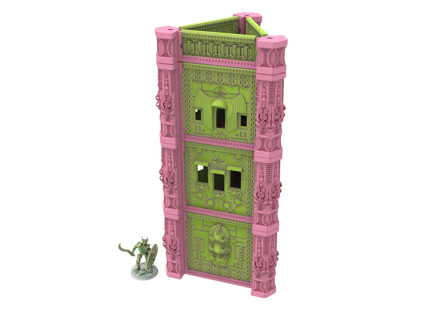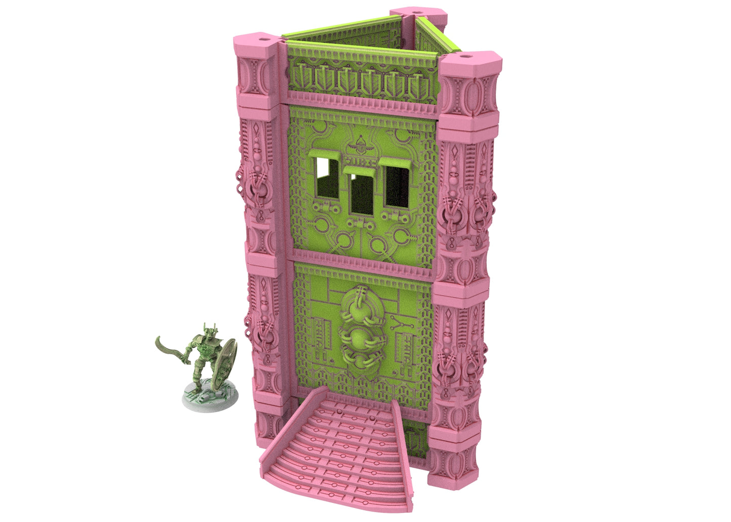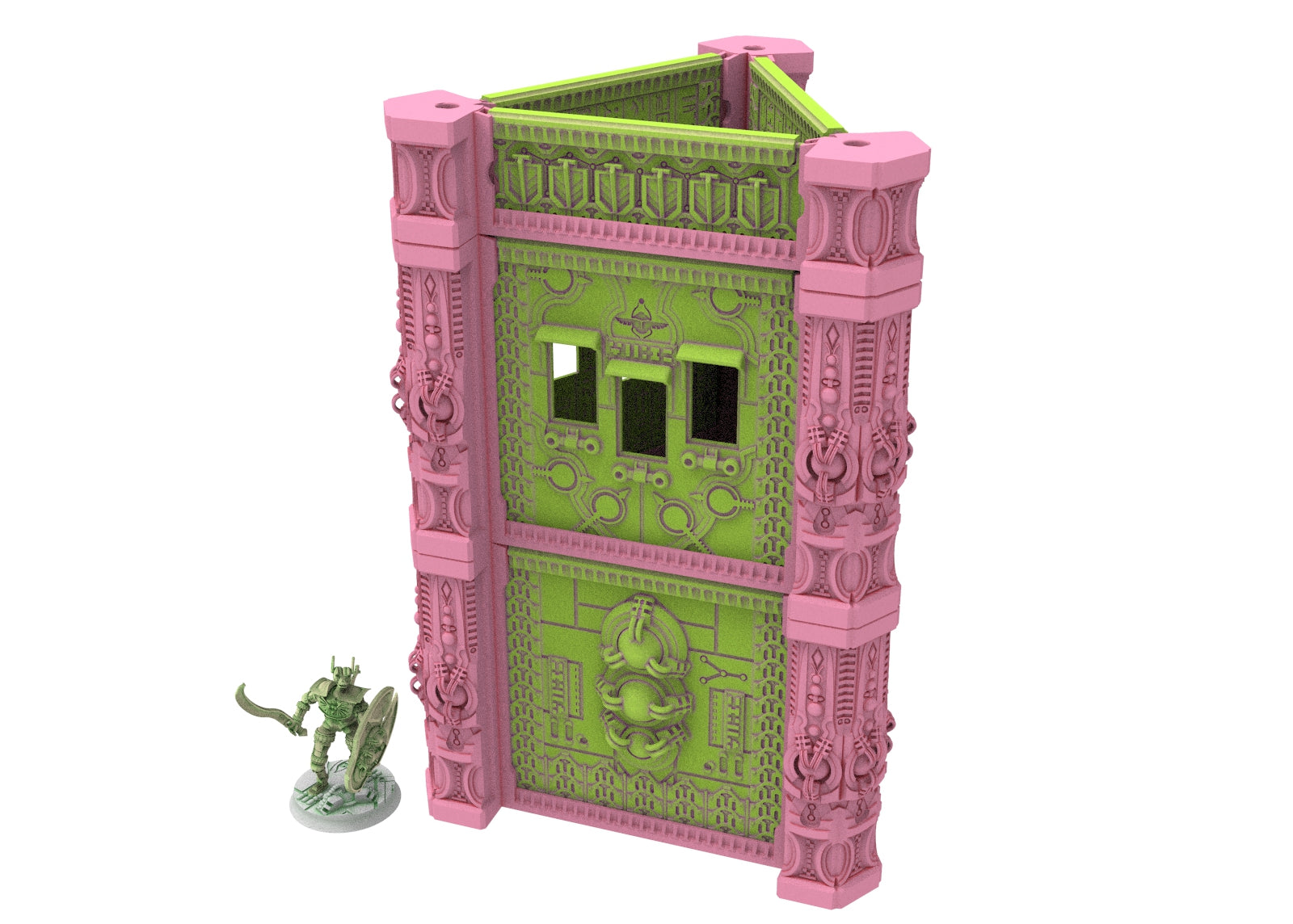 Immerse yourself in an extraordinary world where antiquity and the future collide in a breathtaking spectacle. These modular buildings are perfect for use in tabletop games, dioramas or as collectibles. The designs are highly detailed and crafted with Egyptian motifs and cybernetic elements, creating a unique aesthetic that is sure to impress.