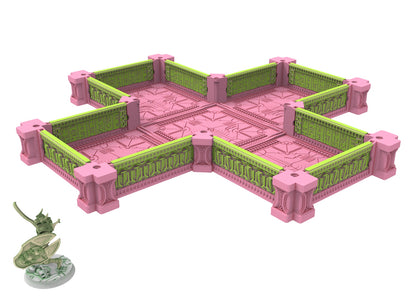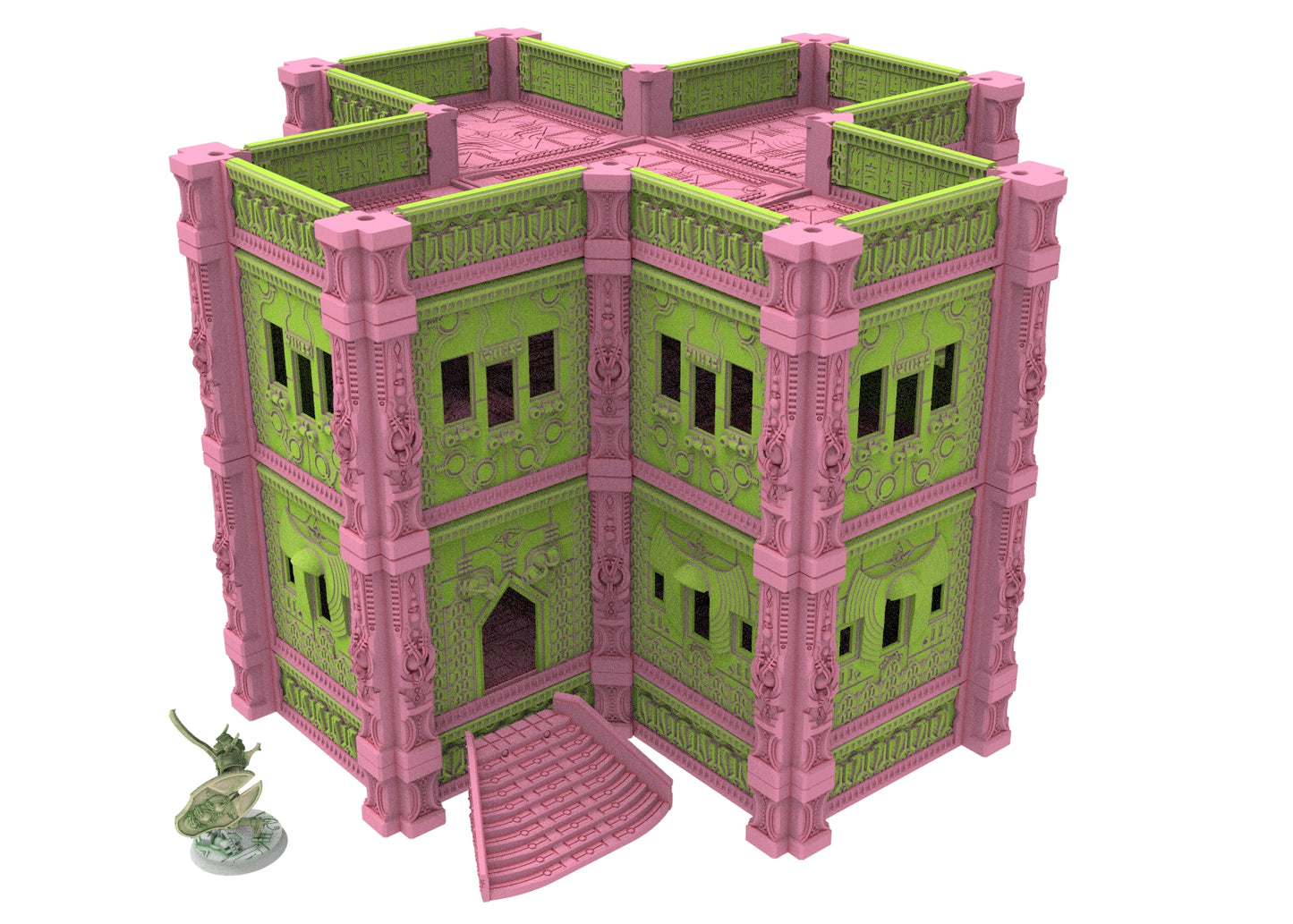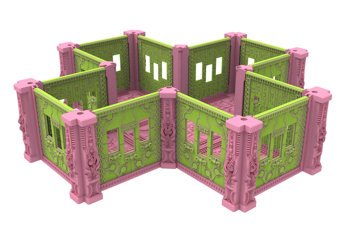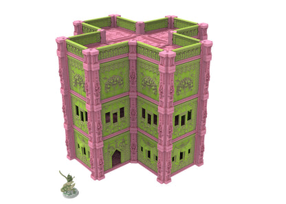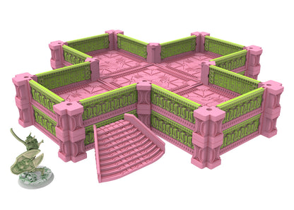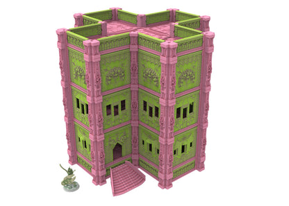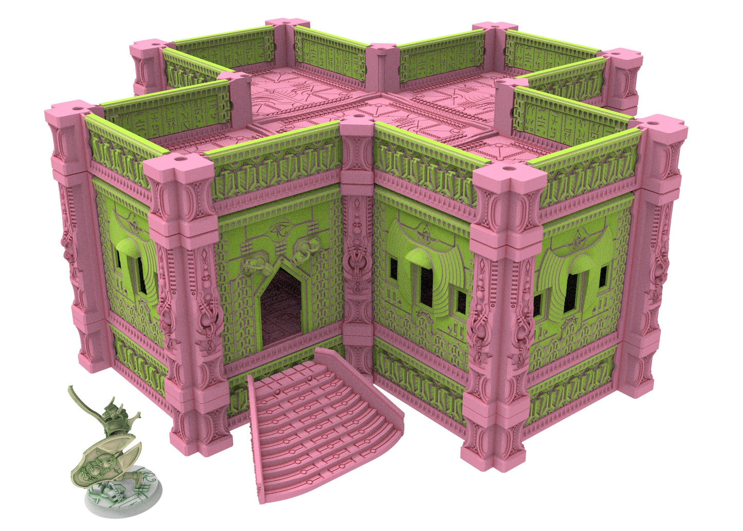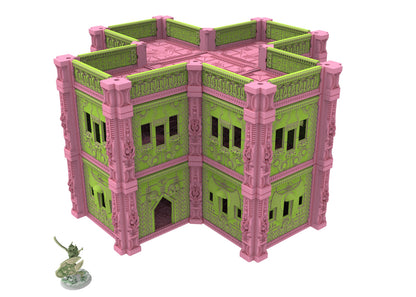 Immerse yourself in an extraordinary world where antiquity and the future collide in a breathtaking spectacle. These modular buildings are perfect for use in tabletop games, dioramas or as collectibles. The designs are highly detailed and crafted with Egyptian motifs and cybernetic elements, creating a unique aesthetic that is sure to impress.