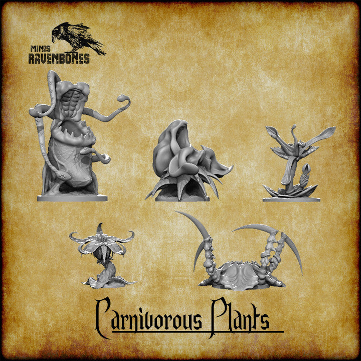 5 different models of carnivorous plants for board games and RPGs by RavenBones Miniatures.