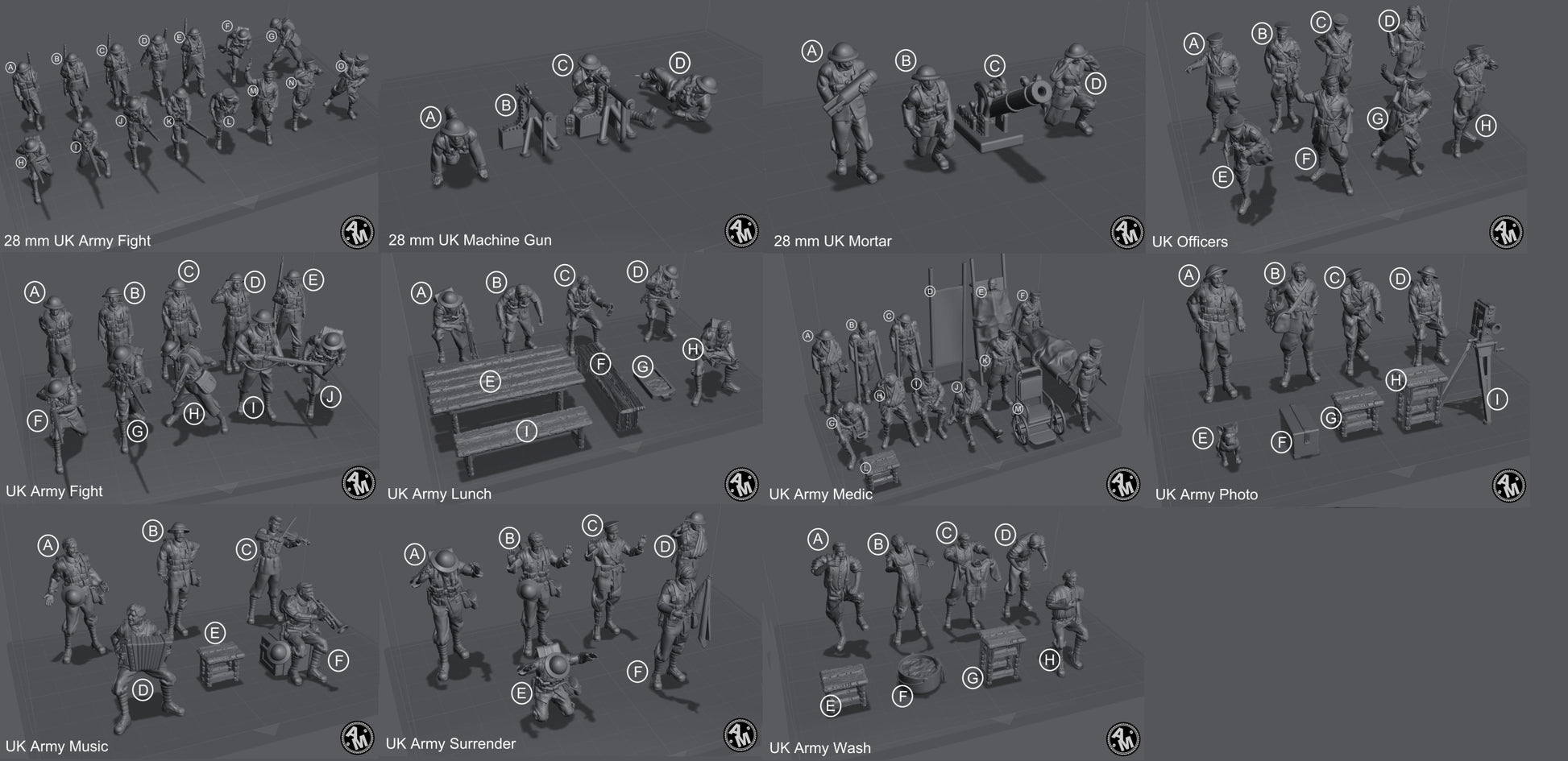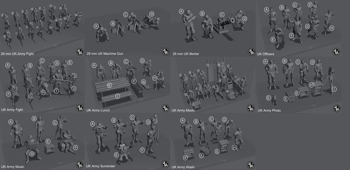 Sets available scaled for 1/30 (60mm figure height standing), 1/35 (50mm figure height standing) and 1/72 (23mm figure height standing).