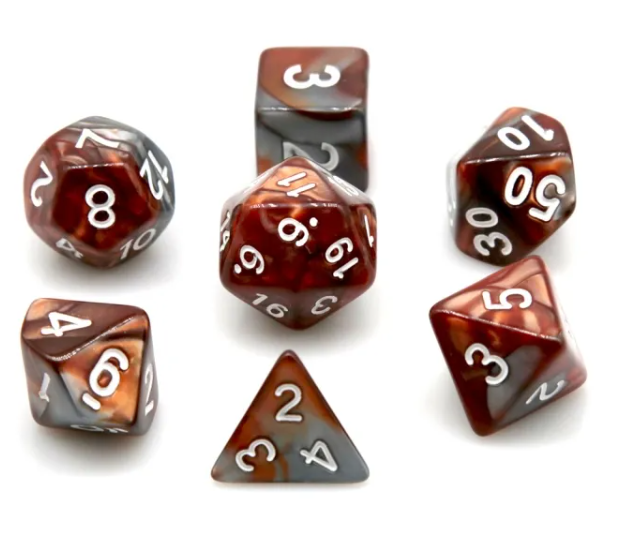 7-teiliges Set aus polyedrischen Würfeln für DnD, RPG-Spiele und andere Spiele.