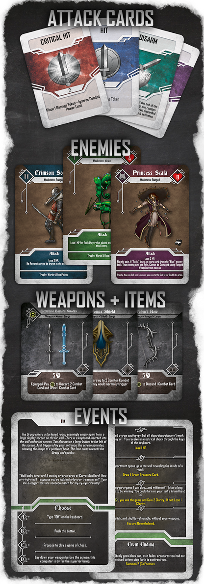 Entdecken, Rätseln, und Kämpfen: In jeder Runde stehen die Spieler vor schwierigen Entscheidungen. Sie müssen wählen, welchen Weg sie als Nächstes beschreiten, die Geheimnisse des Raumes entschlüsseln, die Feinde bezwingen und sich auf die nächste Begegnung vorbereiten. Ihre Gesundheit und ihr Verstand werden auf die Probe gestellt.