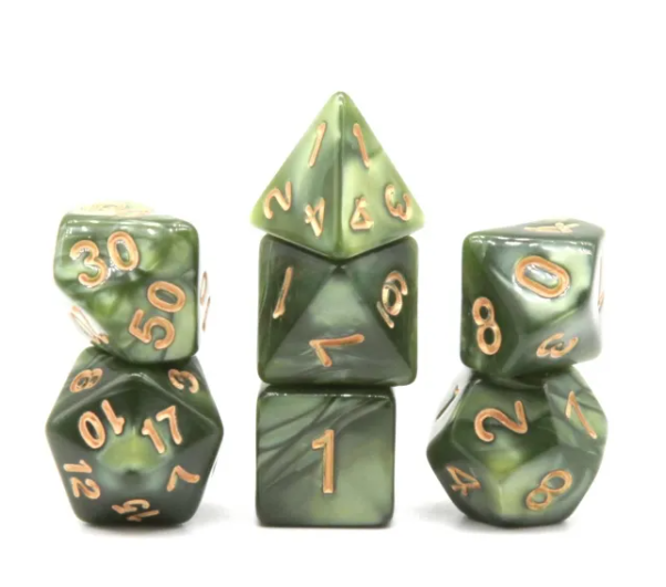 7-teiliges Set aus polyedrischen Würfeln für DnD, RPG-Spiele und andere Spiele.