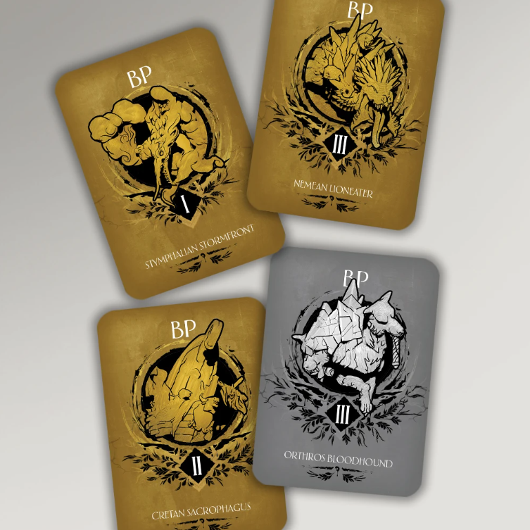 - 650+ Karten, darunter Al, BP, Ausrüstung, Zustände, Trauma, Kratos, Moiros, Wunden, Gelände, Heraklakleides, Charakter, Fähigkeiten, Gelände, Muster, Erkundung, Verbündete, Hinweise, Erwachen, Geheimnisse