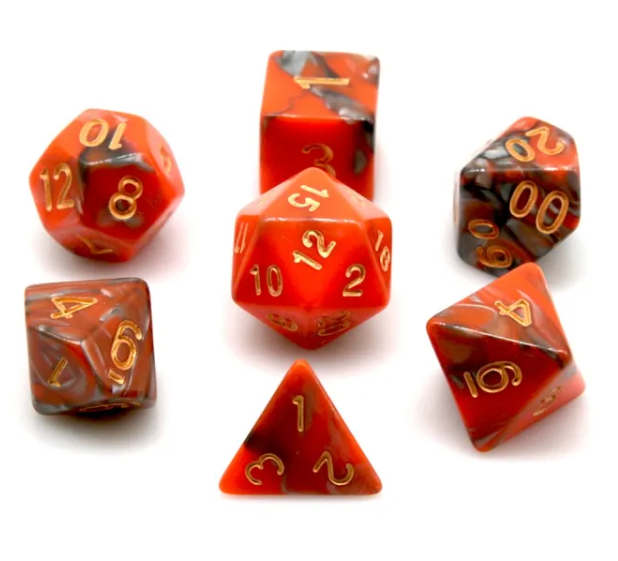 7-teiliges Set aus polyedrischen Würfeln für DnD, RPG-Spiele und andere Spiele.