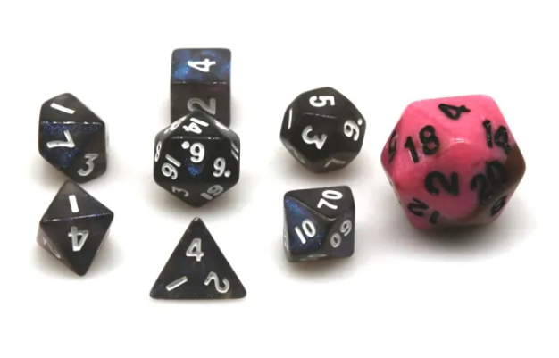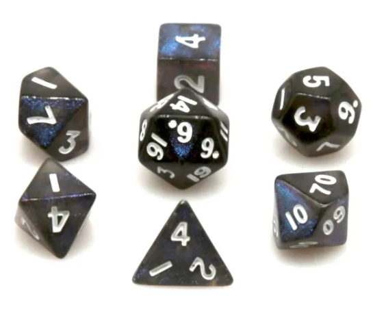 7-teiliges Set aus polyedrischen Würfeln für DnD, RPG-Spiele und andere Spiele.
