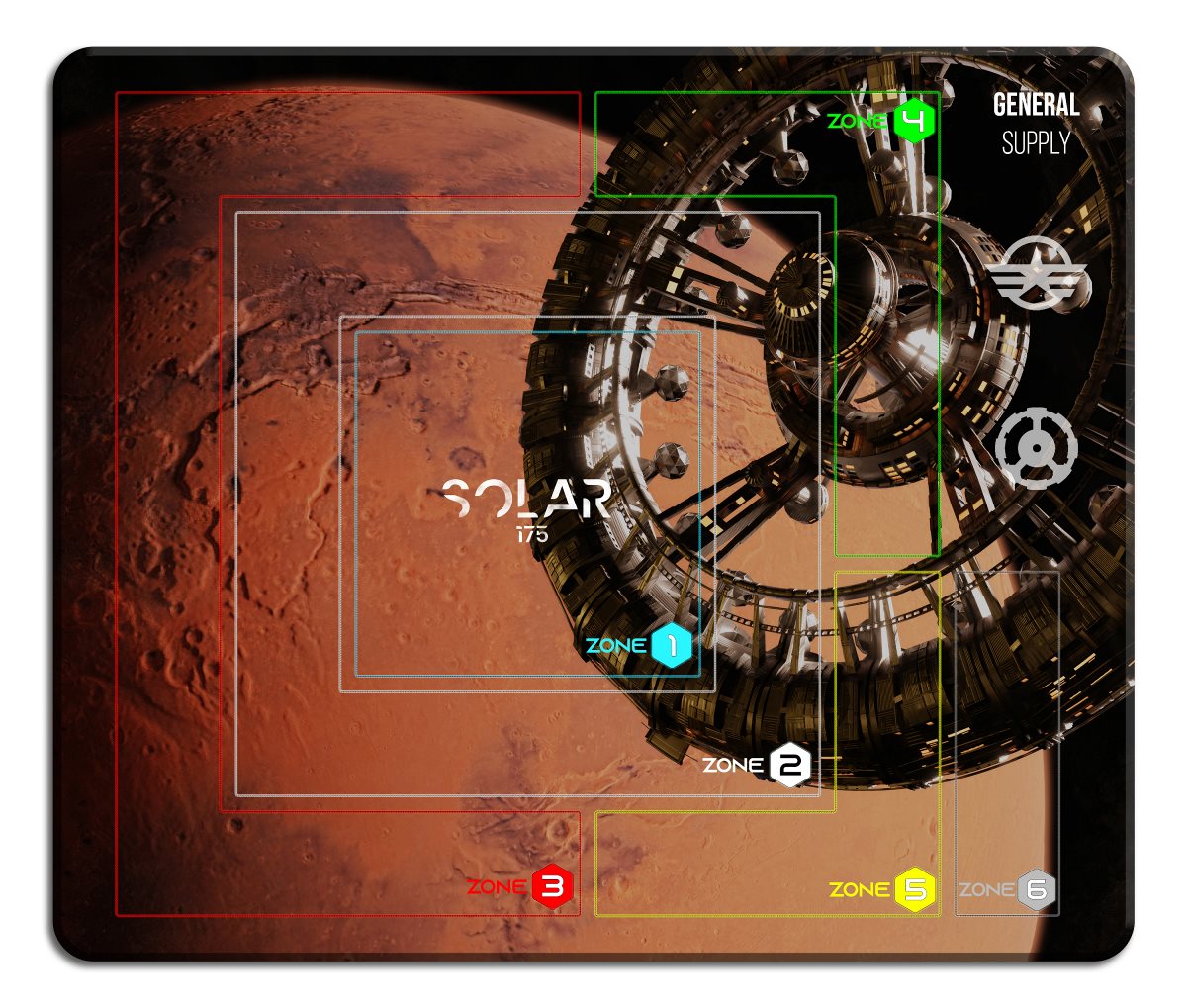 Diese riesige Matte hilft dir, das riesige Universum von Solar 175 zu organisieren... und sie sieht auch auf dem Tisch ziemlich gut aus!