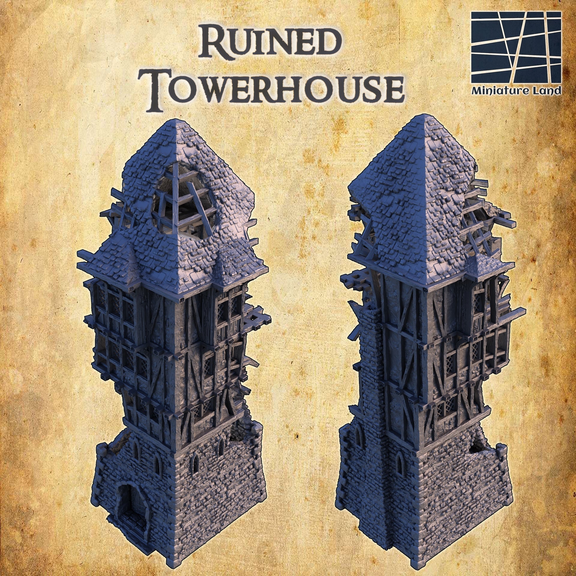 Turmhausruine Mittelalter 3D Terrain Gebäude Miniature Land DnD RPG Tabletop, Brettspiele, Maler und Sammler.