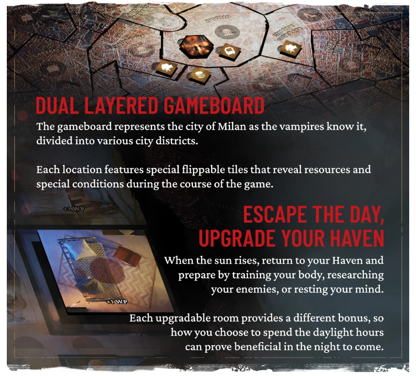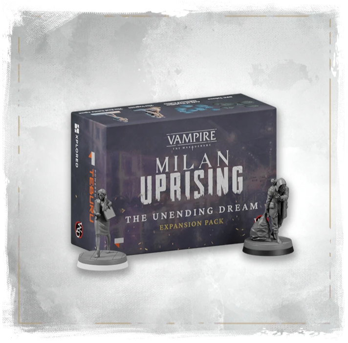 Vampire: The Masquerade - Milan Uprising ist ein kooperatives Miniatur-Brettspiel, das in der Welt der Dunkelheit spielt und ausschließlich auf dem Teburu-System erhältlich sein wird.