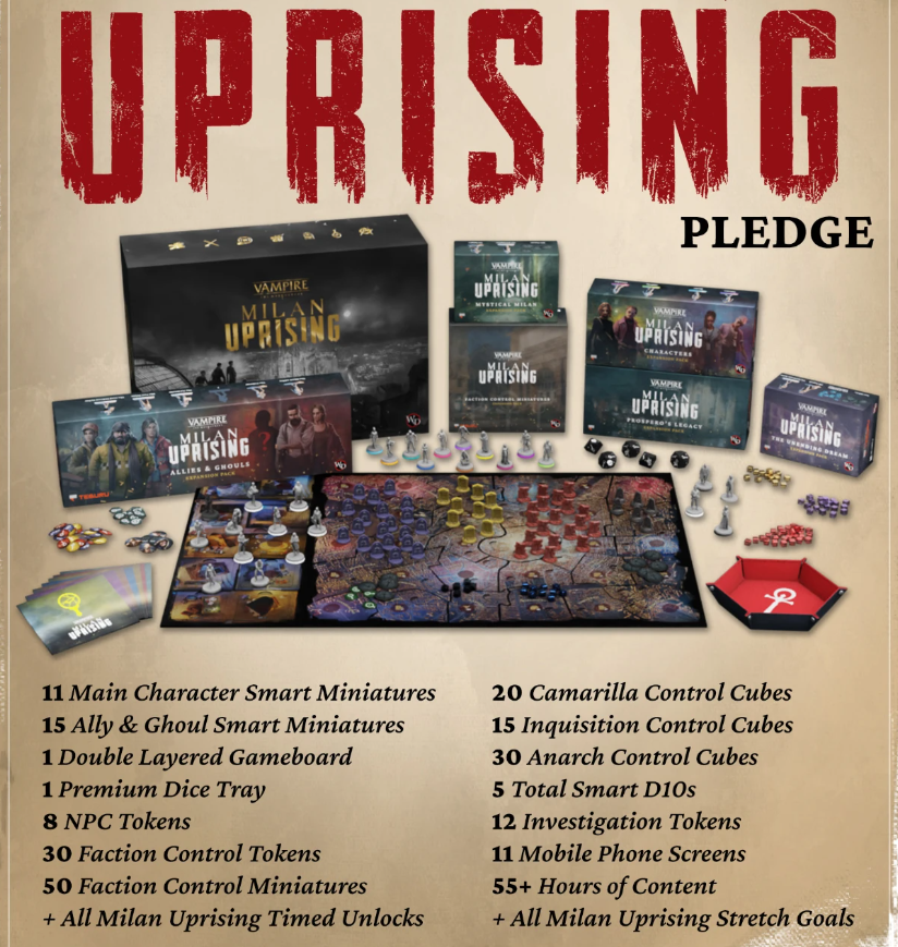 Vampire: The Masquerade - Milan Uprising All-In Upising + Teburu Pledge + Stretch Goals + GF Exclusives Englisch, Deutsch, Französisch, Italienisch, Spanisch